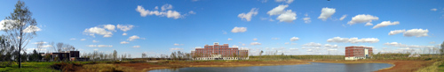 經過兩年多的緊張施工建設,一座環境優美,功能齊全的現代化新園區順利建成并投入使用。新園區座落在長春市高新北區,占地面積45公頃,劃分為科研創新區、教育綜合區、試驗示范區和成果轉化區四大功能區。一期建設工程7.5萬平方米,投資3.5億元,新建單體建筑22個,包括四棟辦公實驗樓、綜合服務樓、研究生公寓和人才周轉公寓等。