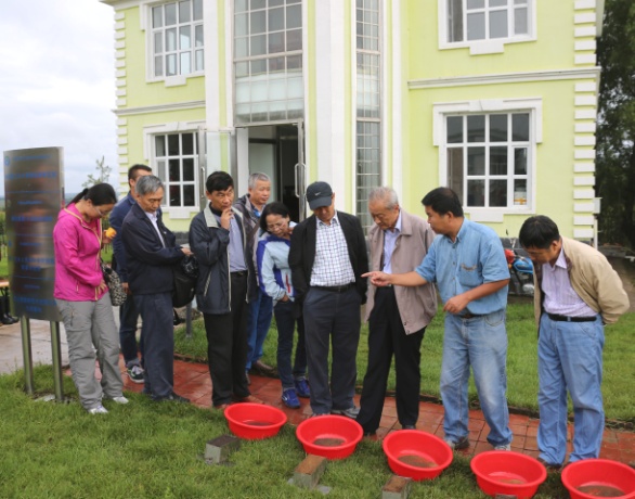 在海倫站,韓曉增研究員首先介紹了海倫站長(zhǎng)期定位觀測(cè)、試驗(yàn)、研究、示范等方面取得的成果。孫院士指出,海倫站的農(nóng)田生態(tài)系統(tǒng)長(zhǎng)期定位試驗(yàn)與觀測(cè)時(shí)間長(zhǎng)、規(guī)模大,積累了不少資料,取得了重要成果,要繼續(xù)按照CERN的規(guī)范堅(jiān)持下去。在海倫站大豆育種試驗(yàn)田,李艷華副研究員向?qū)O院土詳細(xì)介紹了海倫站目前育成的“東生系列”大豆品種11個(gè),其中國(guó)審品種3個(gè),“東生1號(hào)”和“東生9號(hào)”為綏化地區(qū)主推品種,占播種大豆面積60%以上。大豆商品率高,市場(chǎng)價(jià)格高于普通大豆價(jià)格0.2-0.5元/斤。