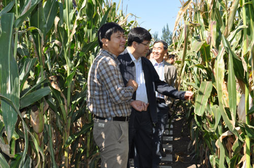 在長春綜合農業試驗站,陰和俊副院長實地考察了玉米育種試驗田、超高產耐鹽堿東稻4號水稻新品種示范田、高光效新型種植模式示范田、大豆分子育種種質資源圃,關義新、楊福、劉景雙和馮獻忠研究員分別就試驗區的試驗設置、研究內容及取得進展做了匯報。陰和俊副院長對我所近年來取得的一系列成果給予了肯定,并就成果的投入成本、效益提升及應用推廣情況等問題進行了細致的了解。