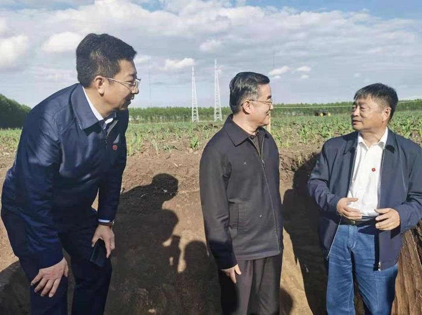 韓曉增和中科院科發(fā)局副局長孫命、農(nóng)業(yè)農(nóng)村部農(nóng)田司副司長陳章全一起考察
