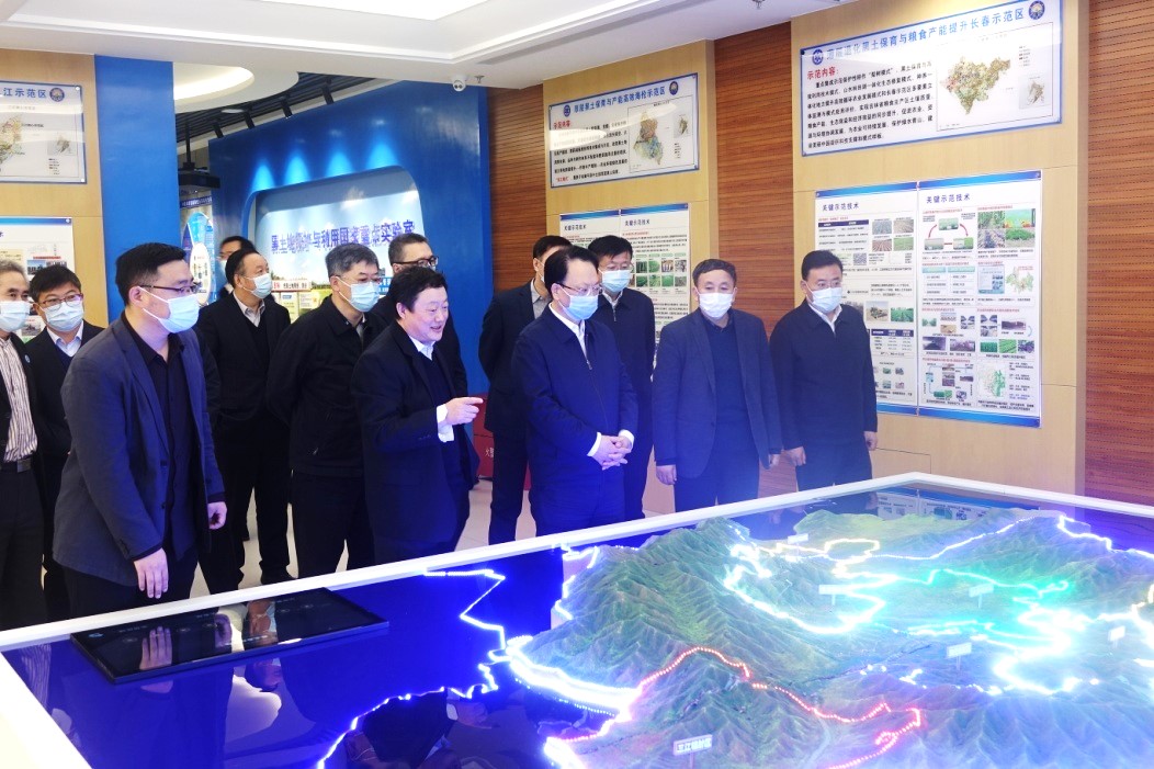 2月10日,吉林省委書記景俊海到中科院東北地理所,看望慰問一線科研人員,就黑土地保護利用工作進行調研。他強調,要深入貫徹習近平總書記視察吉林重要講話重要指示精神特別是關于黑土地保護工作重要論述,扎實推動“黑土糧倉”科技會戰,科學保護、有效利用黑土地這個“耕地中的大熊貓”,加快推動全省糧食產量邁上千億斤臺階,助力吉林扛穩維護國家糧食安全“壓艙石”重任。