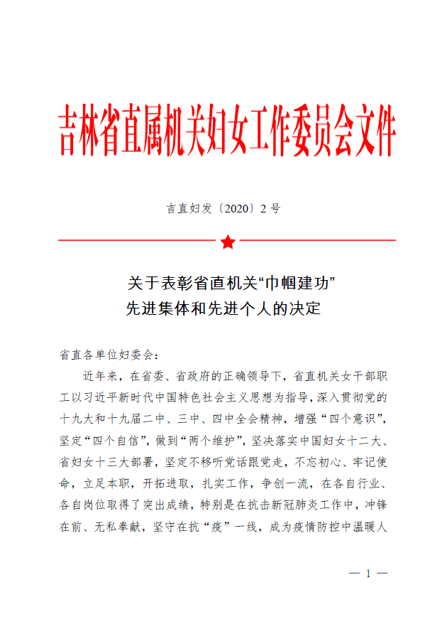 “巾幗建功”獎項的設立意在表彰在各自行業、各自崗位取得了突出成績,特別是在抗擊新冠肺炎工作中,沖鋒在前、無私奉獻,堅守在抗“疫”一線,成為疫情防控中溫暖人心的巾幗力量,為推動省直機關各項工作發展做出了積極貢獻的、以女性為主的先進集體、崗位和個人。疫情發生以來,長春分院系統廣大女職工堅守崗位,齊心協力抗擊疫情同時有序推進復工復產,以實際行動在疫情防控和推動研究所科技創新發展中發揮半邊天力量。