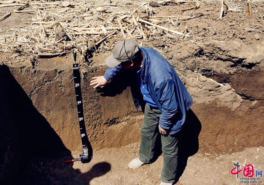 5月11日,探訪中國科學院“黑土糧倉”科技會戰“梨樹模式”示范區。圖為中國科學院沈陽生態所研究員張旭東在示范區基地介紹黑土地地下分層情況。王振紅攝