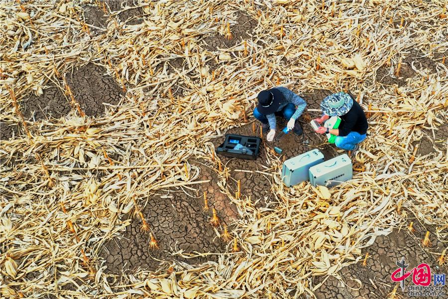5月11日,探訪中國科學院“黑土糧倉”科技會戰“梨樹模式”示范區。圖為科研人員采集樣本和數據。中科院科技攝影聯盟供圖