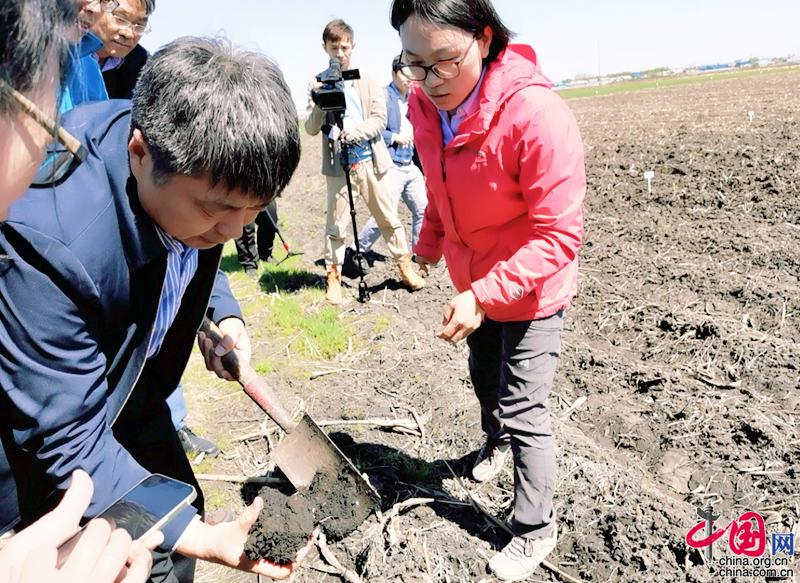 5月13日,探訪中國科學院“黑土糧倉”科技會戰(zhàn)“龍江模式”示范區(qū)。圖為中國科學院東北地理與農(nóng)業(yè)生態(tài)研究所研究員韓曉增(左三)介紹黑土地保護情況。中科院科技攝影聯(lián)盟供圖