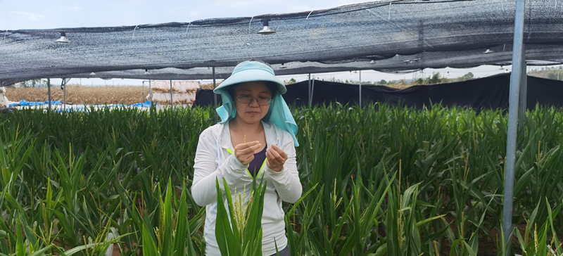東北地理所敖曼高級工程師正在海南南繁基地進行玉米雙單倍體育性調查