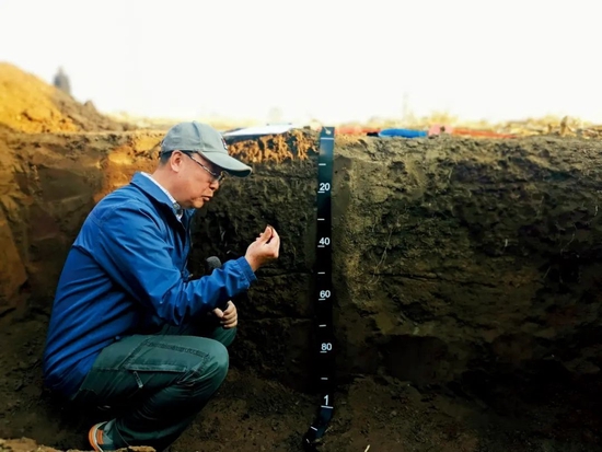 中科院沈陽應用生態研究所張旭東研究員團隊成員在保護性耕作研發基地采集土壤剖面標本和深層土壤樣品。