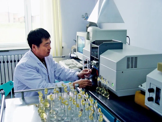 韓曉增在實驗室測試黑土地土壤微量營養元素。圖/韓曉增
