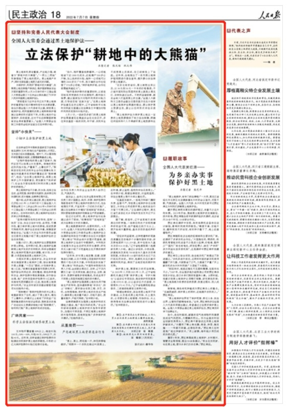 立法保護(hù)“耕地中的大熊貓”(堅(jiān)持和完善人民代表大會制度)