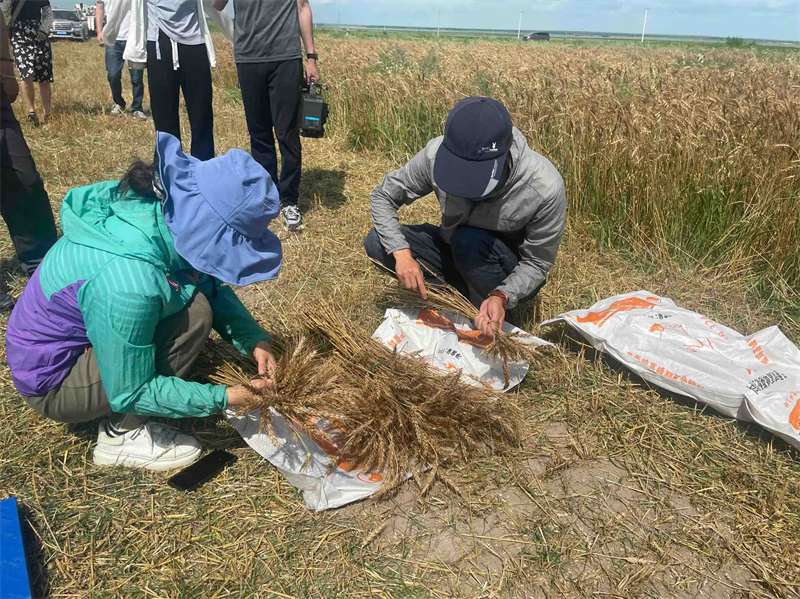 風吹麥浪,滿目金黃。今天,記者隨專家一起來到洮南市圣一農場種植基地,對“雙季雙優”種植模式第一季即將收獲的小冰麥進行測產。專家組經過實測,該試驗地高密度種植區測產產量5104公斤/公頃(17%含水量),正常條件栽培區大面積實收公頃產量3561公斤(17%含水量),雙雙達到了理想預期。