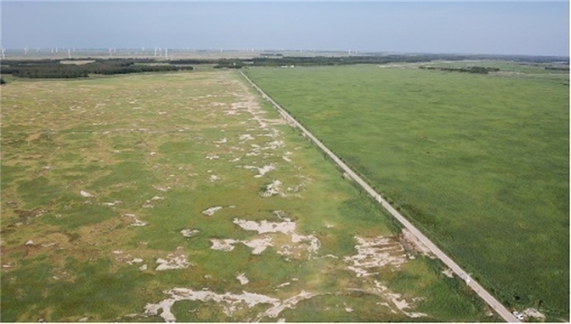 圖為未經改良的鹽堿地與已改良好的鹽堿地 資料圖片