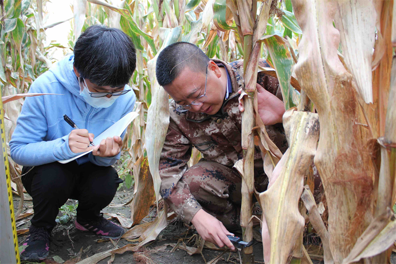在中科院“黑土糧倉(cāng)”科技會(huì)戰(zhàn)長(zhǎng)春示范區(qū)農(nóng)安示范基地-農(nóng)安縣合隆鎮(zhèn)陳家店村,萬畝金黃玉米即將豐收。皮膚黝黑,一身迷彩服,手拿測(cè)尺的陳學(xué)文正和同事、學(xué)生們測(cè)量矮桿密植玉米品種的穗位高、株高、莖粗等指標(biāo),作為秸稈覆蓋還田少免耕技術(shù)體系的負(fù)責(zé)人,他告訴記者,由于農(nóng)業(yè)科研工作的特殊性,他們?cè)缫蚜?xí)慣了堅(jiān)守。“采樣、不同耕作方式和作物品種的測(cè)產(chǎn)、不同技術(shù)模式的整地……要做的事情太多了,正值秋收,黑土保育工作不能停。”陳學(xué)文說。