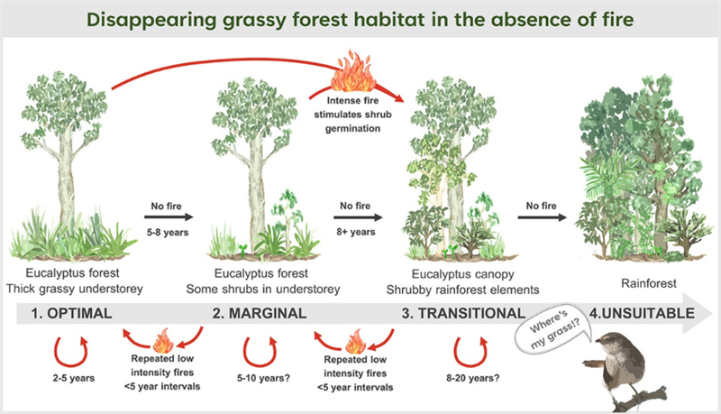 圖2 火燒缺失對草原-森林生境的影響(Stone et al. 2022)