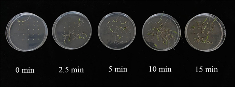 圖6 不同煙熏時(shí)間對狗尾草種子萌發(fā)的影響(作者拍攝)
