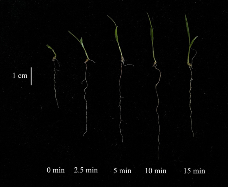 圖7 不同煙熏時(shí)間對狗尾草幼苗生長的影響(作者拍攝)