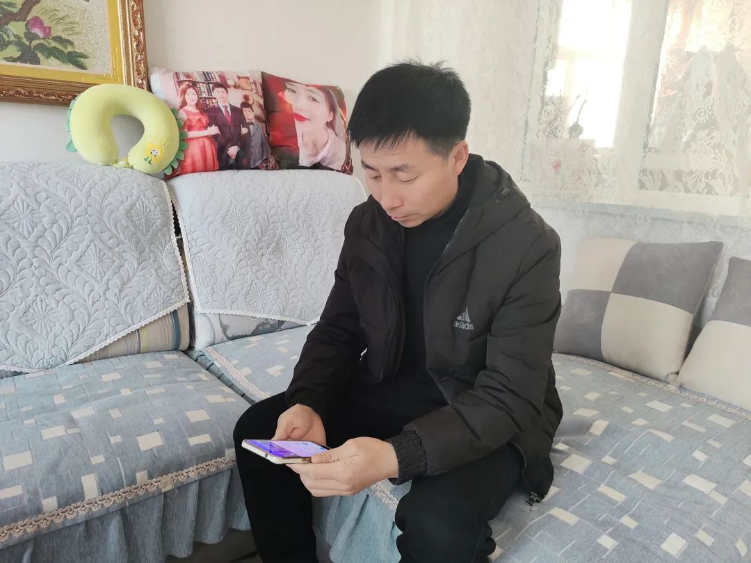 古廟村村民丁海波使用掌上產業園小程序。(記者 王天茹 攝)