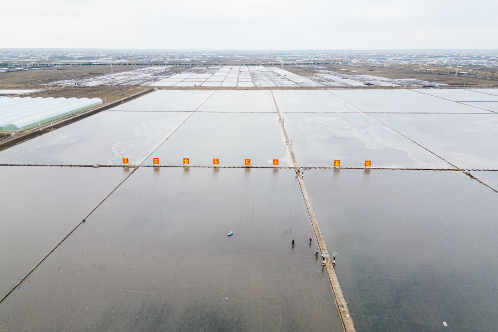 在黑龍江省慶安縣國家現(xiàn)代農(nóng)業(yè)產(chǎn)業(yè)園,農(nóng)民在清理稻田(無人機照片,4月26日攝)。新華社記者 張濤 攝