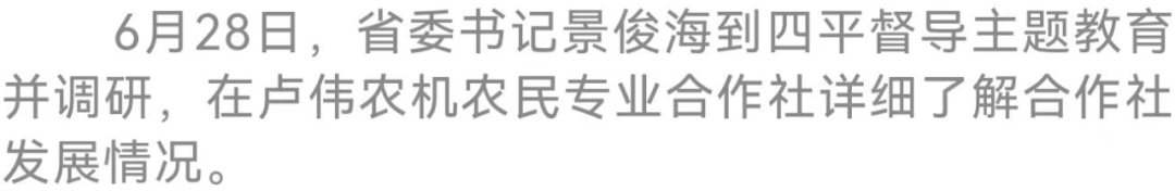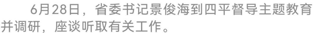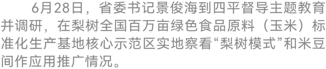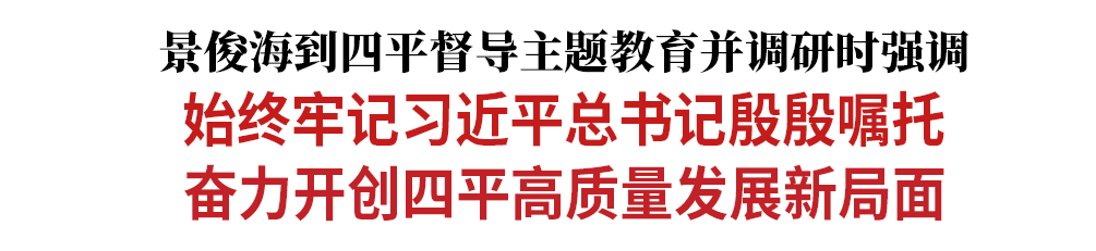 在即將迎來(lái)習(xí)近平總書(shū)記視察吉林三周年之際,省委書(shū)記景俊海今天(6月28日)到四平督導(dǎo)主題教育并調(diào)研,推動(dòng)習(xí)近平總書(shū)記重要講話重要指示精神在四平落地生根、開(kāi)花結(jié)果。他強(qiáng)調(diào),要始終牢記習(xí)近平總書(shū)記殷殷囑托,保持團(tuán)結(jié)奮斗、真抓實(shí)干的勁頭,突出抓好穩(wěn)糧興農(nóng)、援企興產(chǎn)、營(yíng)商興業(yè)、拓基興市、惠民興政、保穩(wěn)興治,奮力開(kāi)創(chuàng)四平高質(zhì)量發(fā)展新局面。