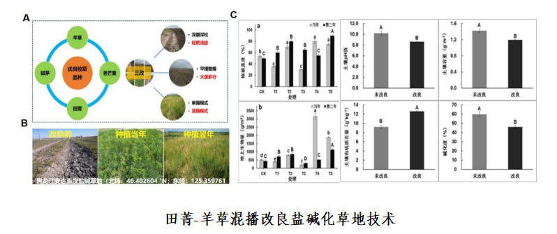 隨后,科研團隊收集了國內外近400份田菁種質資源,利用野生馴化、雜交選育等方式,成功選育出6個高產、優質的田菁新品系,其中1個已通過國家草品種區域試驗申請,并以此構建了新型鹽堿草地改良技術。