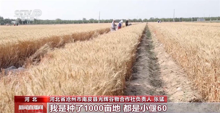 河北省滄州市南皮縣光輝谷物合作社負(fù)責(zé)人 張猛:我種了1000畝地,都是“小偃60”,這個(gè)品種抗鹽堿、抗旱,抗倒伏,產(chǎn)量挺高,畝產(chǎn)達(dá)到1000多斤沒問題。