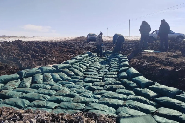 在黑龍江省克山縣華安村,工人們正抓緊建設(shè)溝頭跌水中的上游生態(tài)袋導(dǎo)水地下工程。農(nóng)民日?qǐng)?bào)·中國(guó)農(nóng)網(wǎng)記者 顏旭 攝