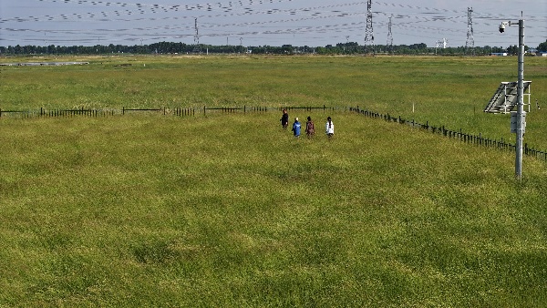 “我們?cè)?0000余份優(yōu)質(zhì)羊草種質(zhì)資源中,篩選出63份具備植株高大、種子產(chǎn)量高、耐鹽堿性強(qiáng)的羊草種質(zhì)在這里進(jìn)行擴(kuò)繁試驗(yàn)。”中國科學(xué)院東北地理與農(nóng)業(yè)生態(tài)研究所研究員馬紅媛介紹。羊草是松嫩平原上的一個(gè)原始優(yōu)勢(shì)物種,其地下根莖可延伸至2米以上,能夠形成密集的植被網(wǎng)絡(luò),有效防風(fēng)保濕固沙,起到很好的草原生態(tài)修復(fù)作用。