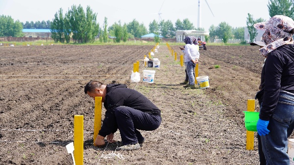 近日,記者在洮北區(qū)青山草場的羊草種子擴(kuò)繁基地看到,科研人員量地塊、分種子、做標(biāo)記,工作人員則將不同標(biāo)號(hào)的種子播撒在不同地塊,一道道工序有條不紊。