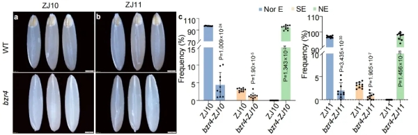研究團(tuán)隊(duì)將OsBZR4功能缺失等位突變導(dǎo)入優(yōu)質(zhì)粳稻品種“中嘉10”和“中嘉11”。結(jié)果顯示,這兩個(gè)新品系的農(nóng)藝性狀與野生型相當(dāng),而精米率分別提高了2.52%和2.57%。