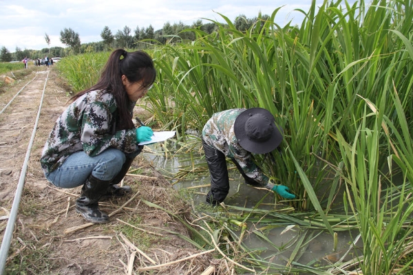 在鎮(zhèn)賚縣坦途鎮(zhèn)的蘇吉匯農(nóng)業(yè)科技有限公司茭白田里,曾經(jīng)白茫茫一片的重度鹽堿地,如今已化作千畝碧波,碧綠的茭白葉泛著油亮的光澤,隨風(fēng)起伏,仿佛一片綠色的海洋。測(cè)產(chǎn)專家們就走進(jìn)中國科學(xué)院東北地理與農(nóng)業(yè)生態(tài)研究所在大田布置的控制實(shí)驗(yàn)基地,交流研究進(jìn)展和定位監(jiān)測(cè)記錄的結(jié)果,大家對(duì)單項(xiàng)技術(shù)以及技術(shù)集成的應(yīng)用效果表現(xiàn)出極大興趣和認(rèn)可。專家組隨后來到生產(chǎn)田塊,“這片葉子顏色深綠,說明肥水管理到位。”“個(gè)別葉鞘下部出現(xiàn)少量褐斑,后期要注意針對(duì)性處理。”測(cè)產(chǎn)還未開始,專家們就已俯身田間,或蹲或立,仔細(xì)查看茭白的株高、葉色、根系發(fā)育情況。他們時(shí)而用手指輕捻葉片,感受葉片的質(zhì)地;時(shí)而用尺測(cè)量株行距,精準(zhǔn)記錄數(shù)據(jù)。他們還不時(shí)與身旁的農(nóng)戶和企業(yè)技術(shù)人員交流意見,為這片茭白田的豐收“把脈問診”。陽光灑在他們專注的臉上,汗水順著鬢角滑落,卻絲毫沒有影響他們工作的熱情。