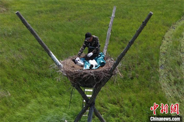 【中國新聞網(wǎng)】興凱湖開展東方白鸛幼鳥環(huán)志工作 科技賦能種群研究