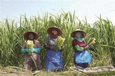 采收翠綠的茭白。
