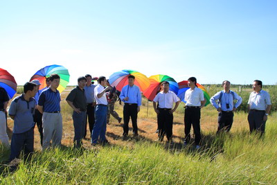 下午專家組及課題組人員赴杜蒙縣他拉哈鎮(zhèn)先后對不同程度鹽堿化土地生態(tài)治理技術(shù)試驗與示范區(qū)進行了實地考察,并就一些治理技術(shù)實施問題進行了現(xiàn)場討論。