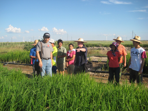 8月16日,Grattan教授前往大安堿地生態(tài)試驗(yàn)站進(jìn)行野外考察。王志春研究員等大安站科研人員及研究生分別向Grattan教授詳細(xì)介紹了大安站田間試驗(yàn)和監(jiān)測工作。Grattan教授就鹽堿地種稻,施肥定位試驗(yàn),排水試驗(yàn),耕作改良試驗(yàn)及地下水、土壤和氣象監(jiān)測等,與大家進(jìn)行了充分的交流和研討,并對鹽堿地農(nóng)業(yè)灌排水管理、耐鹽堿作物種植等方面提出寶貴意見。實(shí)地考察后,由梁正偉研究員主持,Grattan教授在大安站作了題為“Management of saline-sodic drainage water for irrigation: opportunities and challenges”的學(xué)術(shù)報(bào)告,重點(diǎn)介紹了美國加利福尼亞州土地利用和農(nóng)業(yè)發(fā)展情況,鹽漬土改良與節(jié)水研究,灌溉排水管理和再利用,灌溉水質(zhì)與土壤理化性質(zhì)等,并認(rèn)為鹽堿土改良及農(nóng)業(yè)利用是一項(xiàng)重大課題。Grattan教授表示非常愿意在相關(guān)領(lǐng)域開展合作研究。