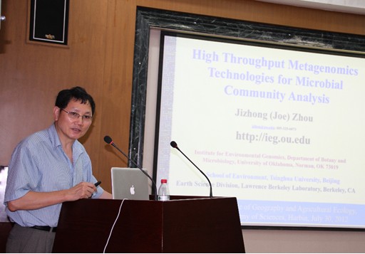 7月30日,應(yīng)我所農(nóng)田分子生態(tài)學(xué)科組邀請(qǐng),美籍華裔科學(xué)家,清華大學(xué)環(huán)境學(xué)院教授、國際環(huán)境微生物基因組學(xué)及生態(tài)學(xué)研究領(lǐng)域的領(lǐng)銜科學(xué)家周集中教授來我所進(jìn)行學(xué)術(shù)訪問交流。并作了題為“High Throughout Metagenomics Technologies for Microbial Community Analysis”的學(xué)術(shù)報(bào)告。