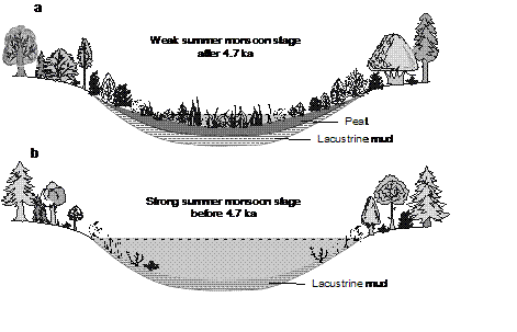 針對這一科學問題,我所濕地演化與生態(tài)功能學科組以三江平原天然沼澤濕地為研究對象,進行了系統(tǒng)的野外調(diào)查、泥炭柱芯采集和實驗分析,并收集整理分析了已有資料。在此基礎(chǔ)上利用頻率統(tǒng)計方法確定了三江平原泥炭地發(fā)育的歷史過程。研究結(jié)果表明,盡管三江平原泥炭地的發(fā)育時期涵蓋了整個全新世,然而80%的沼澤濕地發(fā)育于4600 yrBP之后的全新世中晚期。根據(jù)沉積相的變化發(fā)現(xiàn)該地區(qū)沼澤濕地的大多是在淺湖消亡的基礎(chǔ)上發(fā)育而來的。已有的研究表明,三江平原氣候?qū)贃|亞季風控制的典型溫帶季風氣候,早中全新世是夏季風相對強盛的季風最大期,而4600 yrBP 恰處于東亞夏季風衰退的關(guān)鍵期。因此,通過綜合對比泥炭地發(fā)育頻率變化和東亞季風演化的規(guī)律,該研究認為三江平原泥炭地的發(fā)育主要受控于東亞夏季風強度的變化。在早中全新世東亞夏季風最大期,強盛的夏季風帶來充足的降水,使三江平原低洼地貌區(qū)域形成水位較深的淺湖環(huán)境。而4600 yrBP以后,隨著夏季風的減弱,早期的湖泊開始逐漸消亡,沼澤濕地在此基礎(chǔ)上開始發(fā)育。
