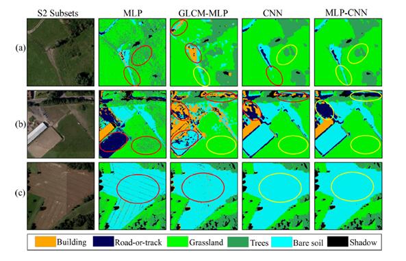在遙感深度學(xué)習(xí)領(lǐng)域,研究人員針對(duì)極高空間分辨率遙感分類難題,基于規(guī)則融合手段充分挖掘卷積神經(jīng)網(wǎng)(CNN)與多層感知器(MLP)處理遙感數(shù)據(jù)的優(yōu)勢(shì),開發(fā)了一種新穎的MLP-CNN分類算法,并利用極高分辨率航空影像對(duì)該算法進(jìn)行了充分驗(yàn)證。研究結(jié)果表明,該算法在降低遙感分類“椒鹽現(xiàn)象”的同時(shí),能充分挖掘影像的細(xì)節(jié)信息,是一種非常適合處理極高分辨率遙感影像的技術(shù)方法。
