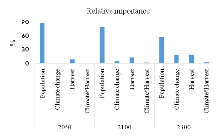 東北地理所景觀生態過程學科組研究人員結合森林調查數據、土地利用數據、土壤數據及氣候變化預測數據,利用森林景觀過程模型(LANDIS PRO)和生態系統過程模型(LINKAGES)預測了30個樹種在未來300年內的分布變化,明確樹種分布在未來的變化規律,量化了種群動態過程、森林采伐、氣候變化及其交互作用的相對重要性以及影響樹種分布變化的重要的生物屬性。