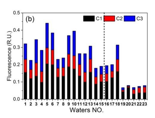 圖1.三維熒光平行因子法識別的DOM組分及其在城市和非城市水體中的分布