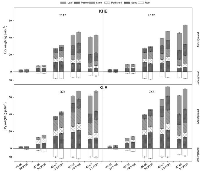 鮮食大豆俗稱“毛豆”,是一種于鮮莢期采收的特用大豆類型。鮮食大豆的營養(yǎng)價值豐富,是公認的營養(yǎng)保健食品。同時,鮮食大豆又是一種喜鉀作物,其產(chǎn)量和品質(zhì)的形成對鉀素的豐缺十分敏感。目前,面對黑土退化、地力下降等嚴峻形勢,充分發(fā)揮作物對鉀素的吸收利用效率是緩解土壤鉀素供應不足、實現(xiàn)資源高效持續(xù)利用的重要手段。為此,鉀高效型鮮食大豆的選育及其對鉀素的高效吸收利用機制解析尤為關(guān)鍵。
