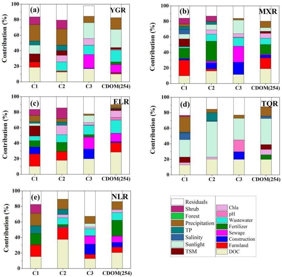 圖1 中國不同湖區(qū)湖泊水體熒光組分影響因素