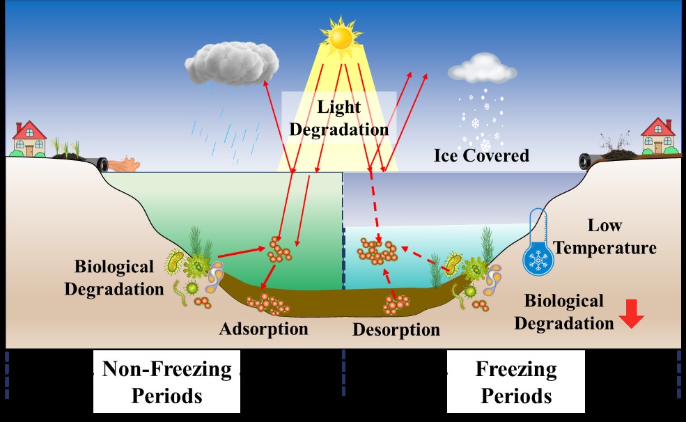 圖1. 全季節寒區湖泊抗生素賦存的影響因素示意圖