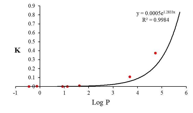 圖5. Log P和K的相關關系 (Log P表示特定抗生素的辛醇-水分配系數的對數;K為抗生素與相應ARGs線性函數關系的斜率值)