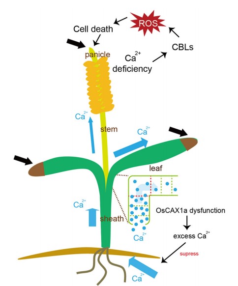 Quan Gan, Fengshun Song,Chuanzhong Zhang, Zhongmin Han, Bin Teng, Cuixiang Lin, Dongfang Gu, Jiajia Wang, Huan Pei, Ji Wu, Jun Fang*,Dahu Ni*. 2023. Ca2+ Deficiency Triggers Panicle Degeneration in Rice Mediated by Ca2+/H+Exchanger OsCAX1a. Plant, Cell & Environment. doi.org/10.1111/pce.14550