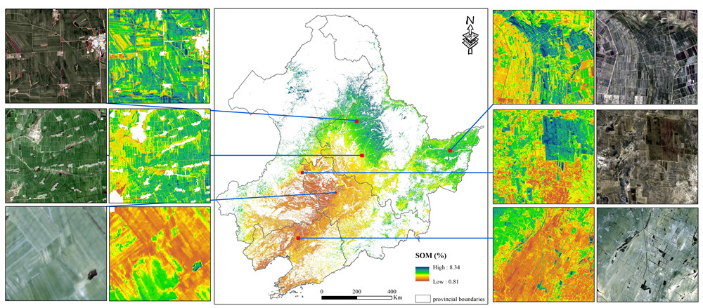 土壤有機(jī)質(zhì)(SOM)含量是衡量土壤肥力高低的重要指標(biāo)之一,尤其是對(duì)土地肥沃的東北黑土區(qū)。此外,SOM中儲(chǔ)存的碳也是全球陸地碳循環(huán)的重要組成部分,對(duì)全球碳收支平衡具有重要意義。然而高精度SOM含量空間分布圖的缺失使得土壤質(zhì)量評(píng)價(jià)與區(qū)域碳循環(huán)評(píng)估的精度也受到影響。準(zhǔn)確快速地對(duì)區(qū)域耕地SOM含量制圖對(duì)區(qū)域耕地高質(zhì)量管理與農(nóng)業(yè)可持續(xù)發(fā)展具有重要意義。