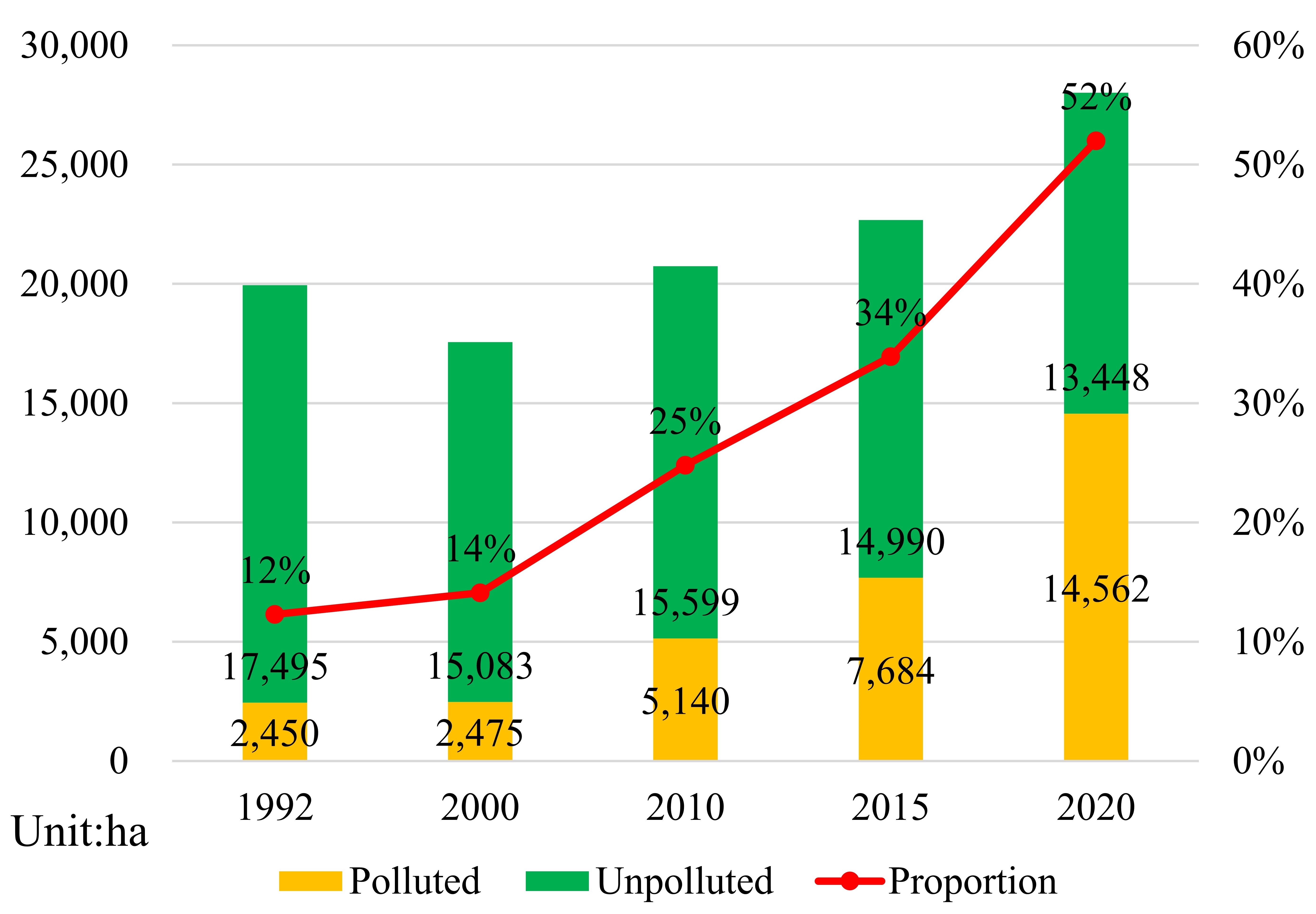 圖1 1992-2002年中國(guó)紅樹(shù)林光污染統(tǒng)計(jì)