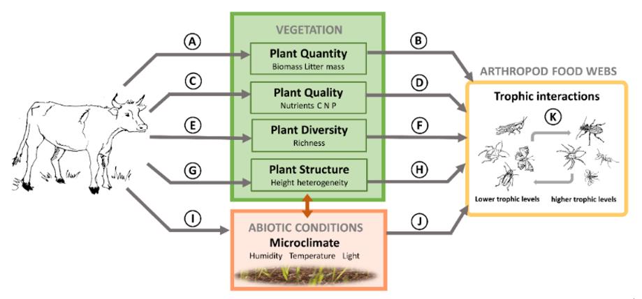 圖1 大型草食動物對節(jié)肢動物食物網(wǎng)作用途徑的概念框架