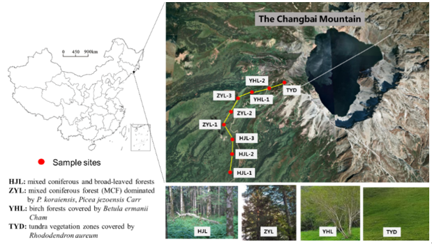 東北地理所濕地生物與環(huán)境學(xué)科組研究人員按照海拔梯度對長白山土壤、植被等開展了系統(tǒng)調(diào)查,基于熱裂解-氣質(zhì)聯(lián)機(Py-GC/MS)與熱重分析(TGA)分析,揭示了長白山不同植被帶土壤碳庫穩(wěn)定性維持機制。