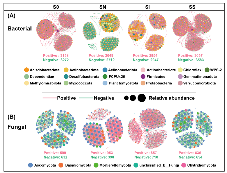 圖3 土壤動物入侵對土壤細菌和真菌群落網絡的影響.