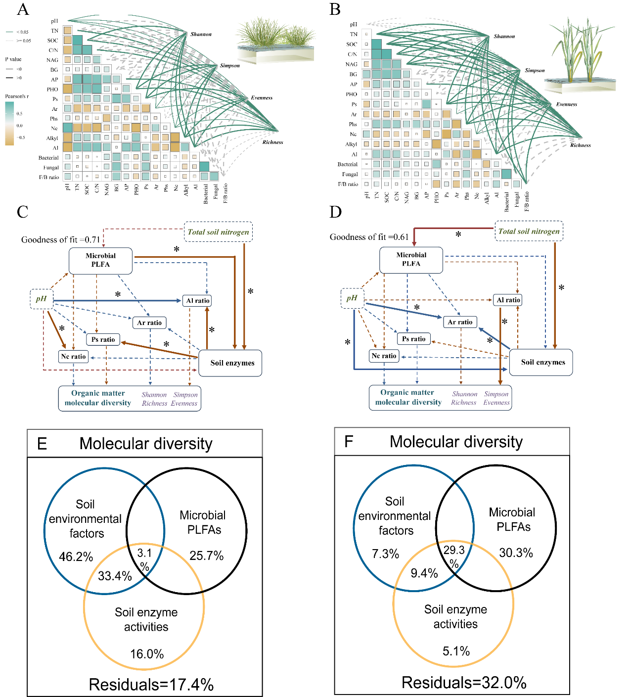 圖1 天然濕地和水稻田土壤有機質分子多樣性的驅動因素