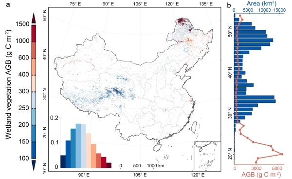植被是濕地生態(tài)系統(tǒng)的基本組成部分,監(jiān)測(cè)其地上生物量的變化對(duì)于準(zhǔn)確認(rèn)知濕地生態(tài)系統(tǒng)對(duì)全球氣候變化的響應(yīng)至關(guān)重要。在全球植被綠化趨勢(shì)的背景下,由于原位觀測(cè)不足、濕地植被生長(zhǎng)與局地水文關(guān)系復(fù)雜等因素限制,已有研究缺乏對(duì)大尺度、長(zhǎng)時(shí)間序列的濕地植被地上生物量時(shí)空格局的準(zhǔn)確解析,限制了濕地植被碳匯等研究進(jìn)展及生態(tài)系統(tǒng)可持續(xù)管理。